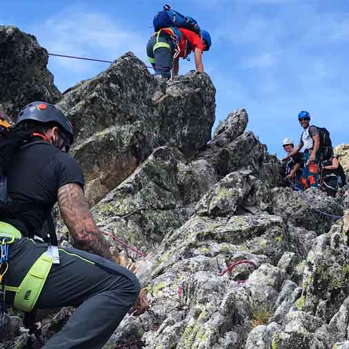 Te prepararemos para que puedas abordar esos pasos de escalada sencilla pero aérea que son obligatorios para alcanzar algunos de los picos más representativos del Pirineo o los Picos de Europa. Este curso es también el complem perfecto de un curso de iniciación al alpinismo. Con ambas formaciones te sentirás más cerca de tus sueños en  montaña que nunca.