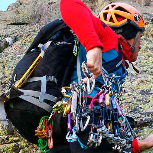 • Material de autoprotección: friends, fisureros, clavos, anillos para lacear, etc.