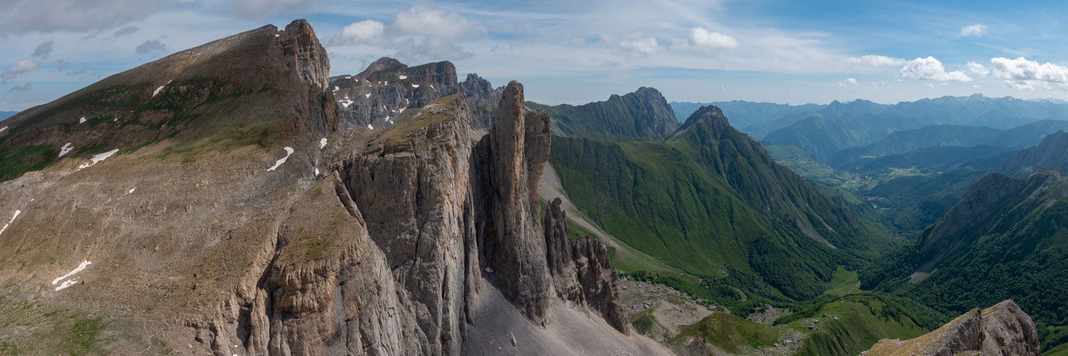 Lo mismo puede decirse del pico de Petrechema, desde cuya cima se contempla gran parte del Pirineo. Sin embargo, el plato fuerte del día es la visión de este pico y de las agujas de Ansabere desde abajo, desde el circo de Lescum. La misma impresión nos produce la mole de El Billare desde la plana de Sanchese. Para acabar la etapa, recorremos un hayedo que nos deja a la puertas del refugio L’Aberouat.